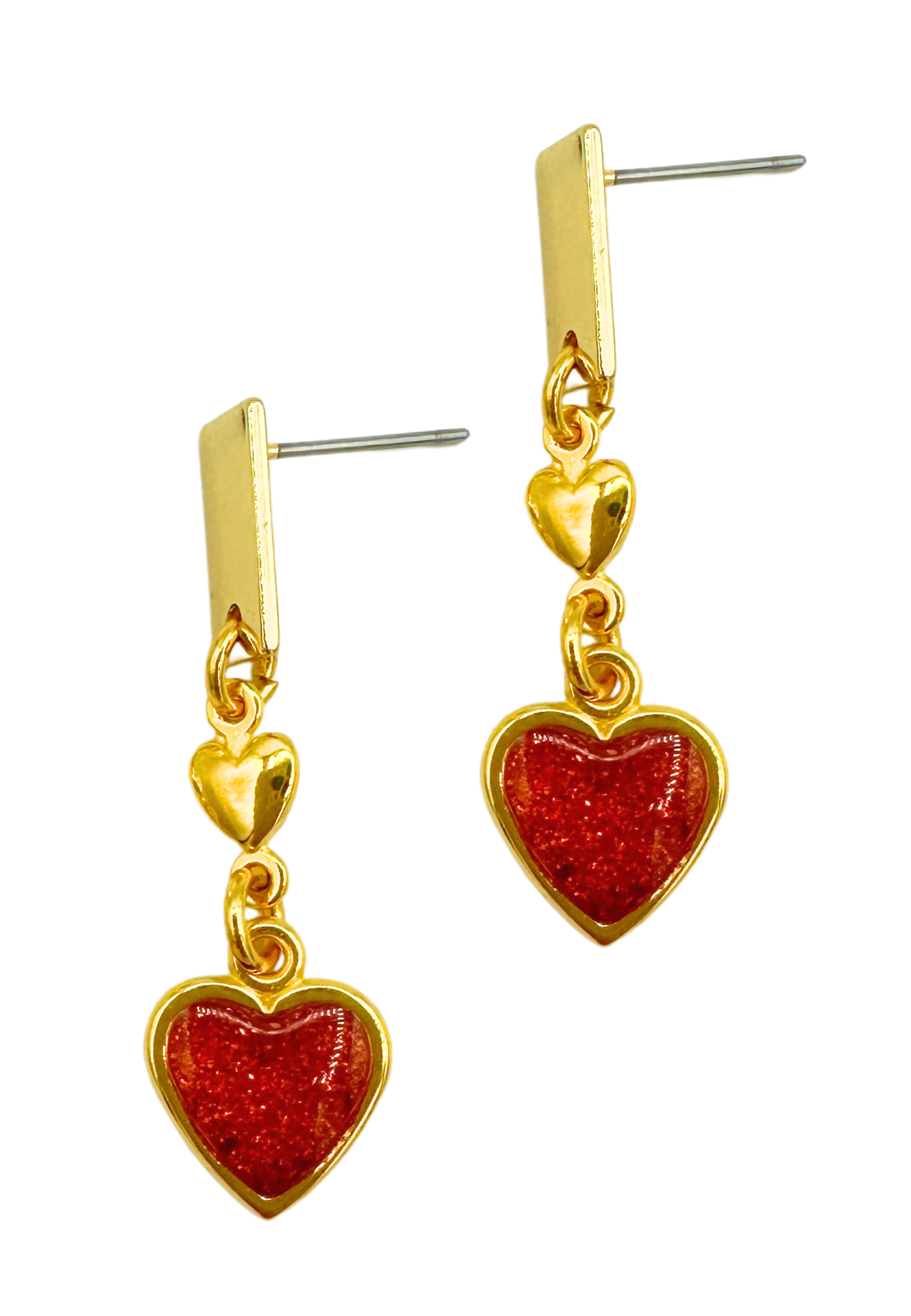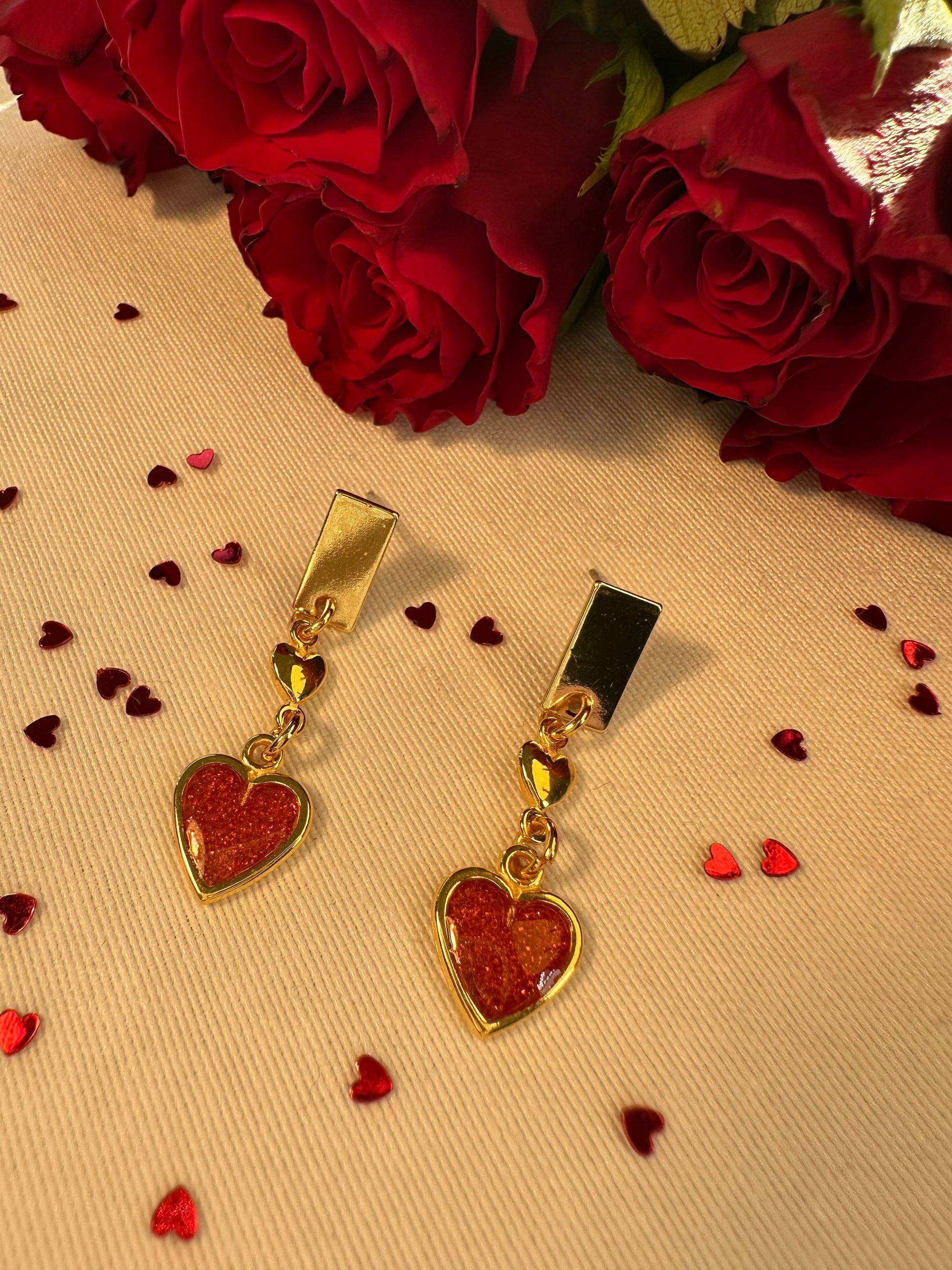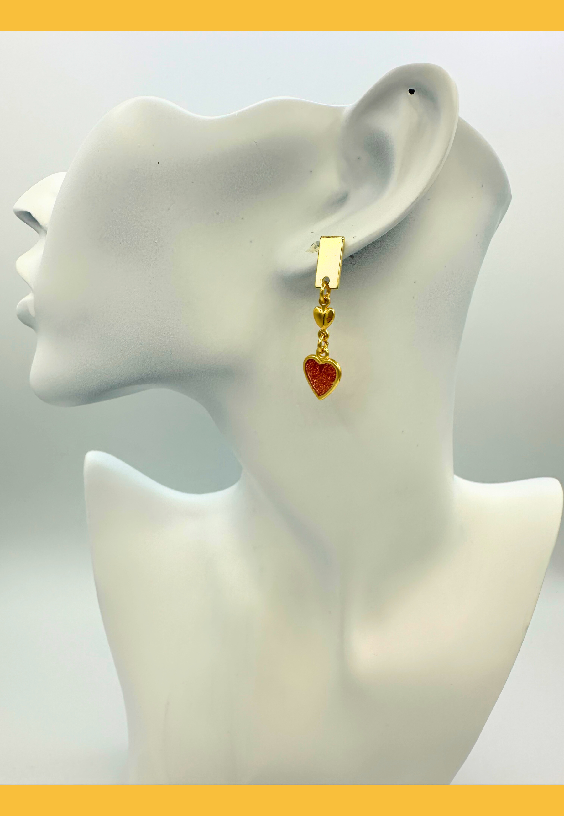 Bereid u voor op een flinke dosis romantiek met deze liefdevolle oorbellen. Deze speelse oorbellen zijn vervaardigd goudkleurig metaal met een rood hartje af.