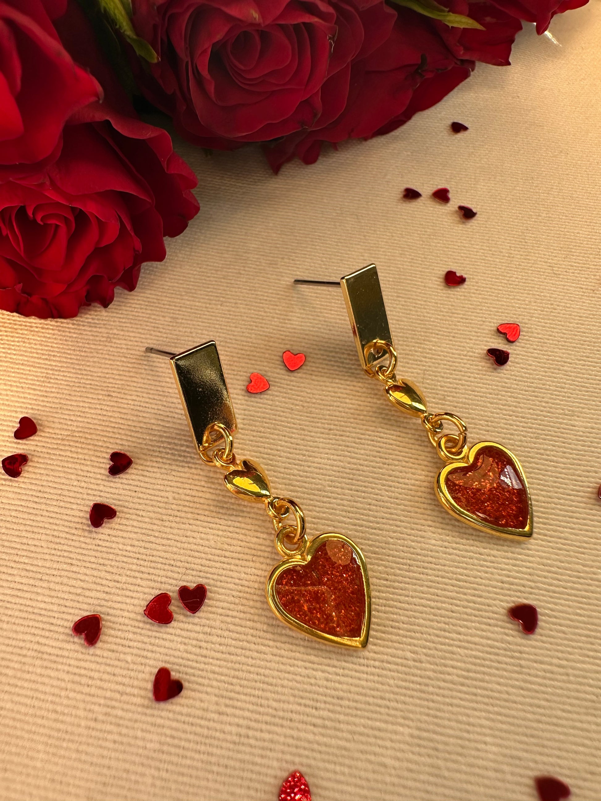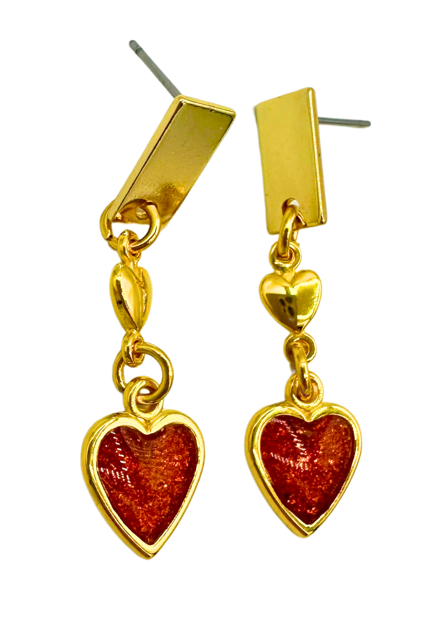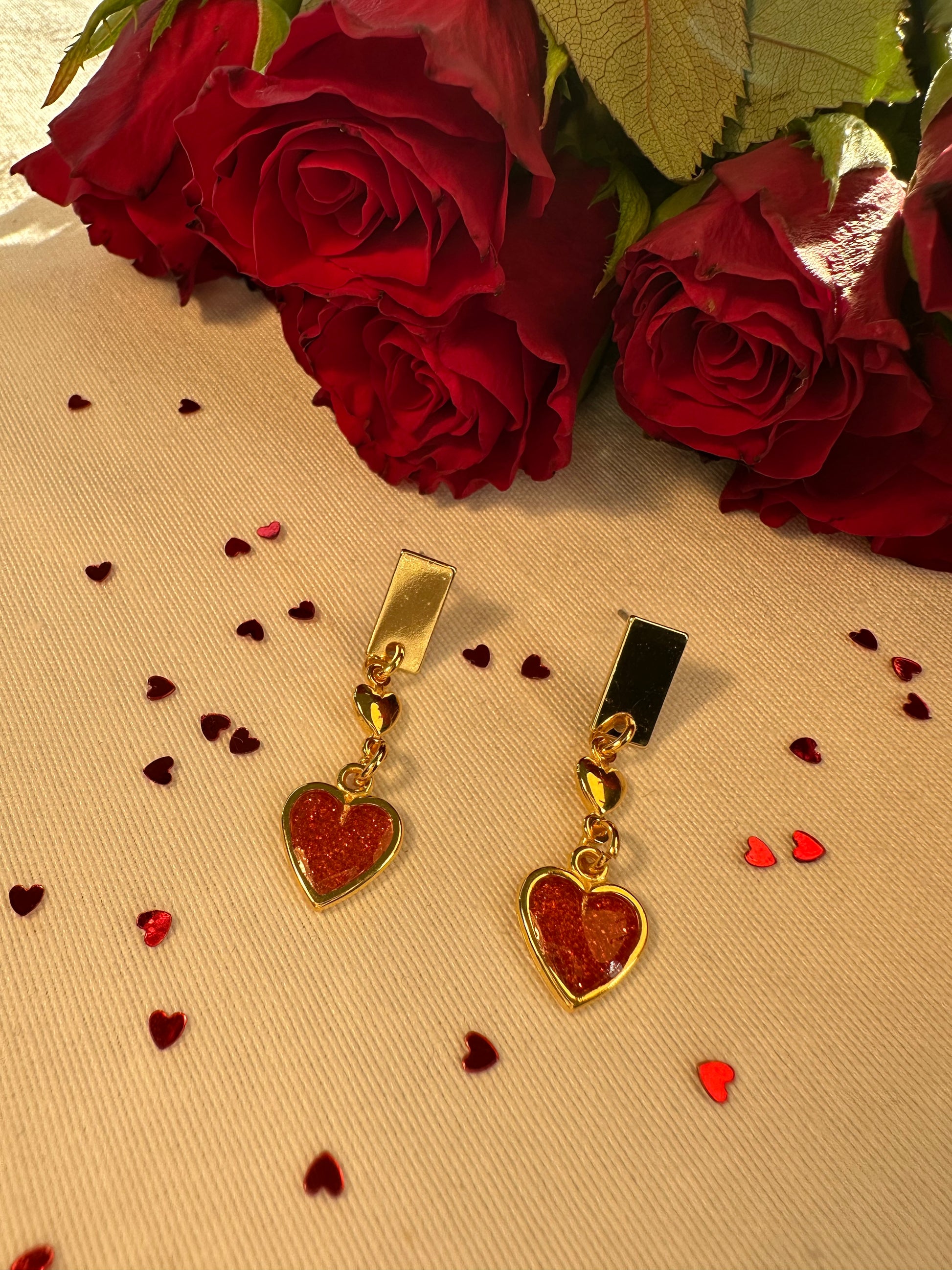 Bereid u voor op een flinke dosis romantiek met deze liefdevolle oorbellen. Deze speelse oorbellen zijn vervaardigd goudkleurig metaal met een rood hartje af.